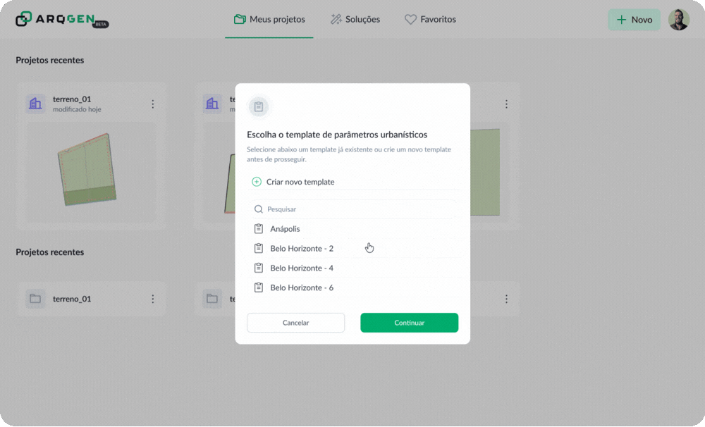 As regras urbanísticas são configuradas de acordo com o município e o zoneamento aplicável. A Arqgen organiza essas regras de forma estruturada para que elas sejam aplicadas de maneira consistente na geração e comparação de cenários.