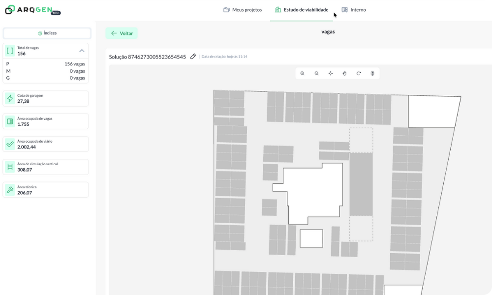 Posicione vagas automaticamente e explore o melhor aproveitamento da laje, considerando subsolo e sobressolo, com a ferramenta de garagem [Beta].